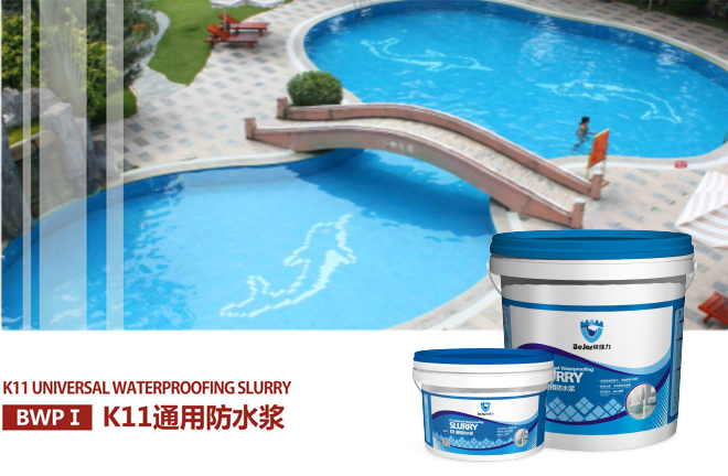 K11通用防水浆属于双组份防水涂料。液料是由聚合物乳液与其他助剂经过特殊工艺加工而成,粉料是由水泥、石英砂、无机填料经过高科技特殊处理加工而成。液料与粉料混合搅拌成防水涂料。具有粘结力强、抗渗性强,耐水性好等特点,属于无毒、无害、无污染绿色环保产品。